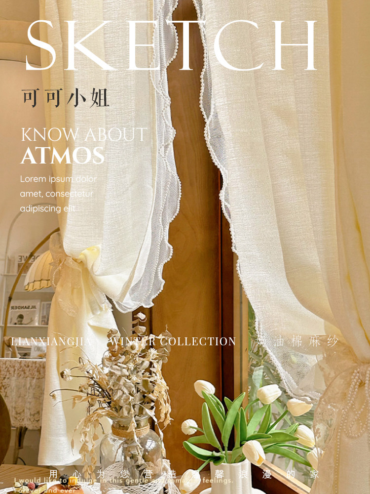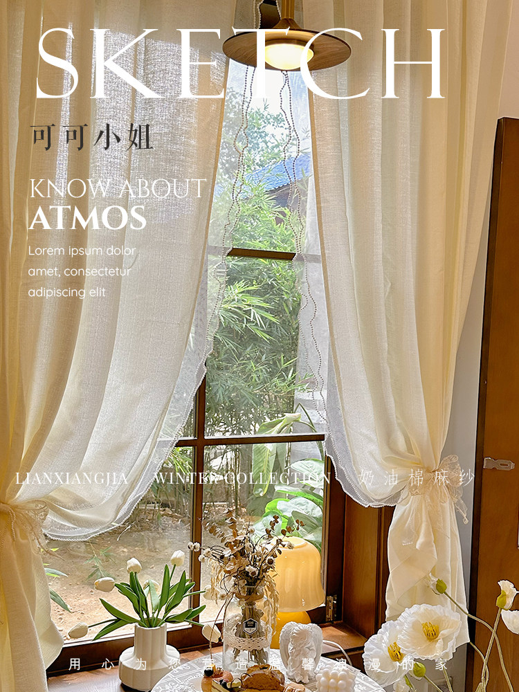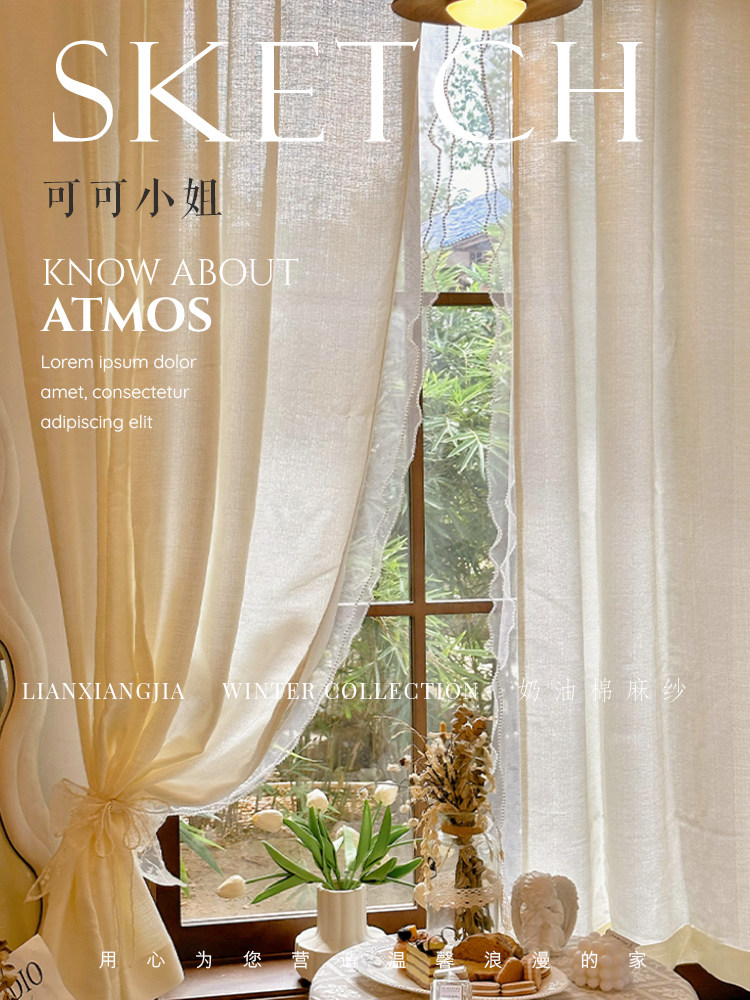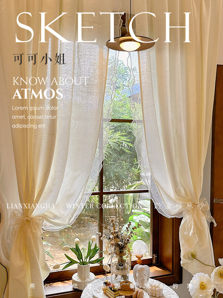 奶油风法式轻奢窗帘透光不透人梦幻帘客厅少女卧室蕾丝纱帘阳台