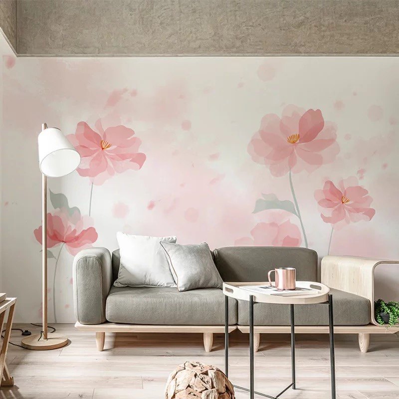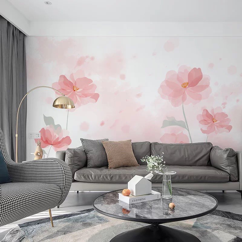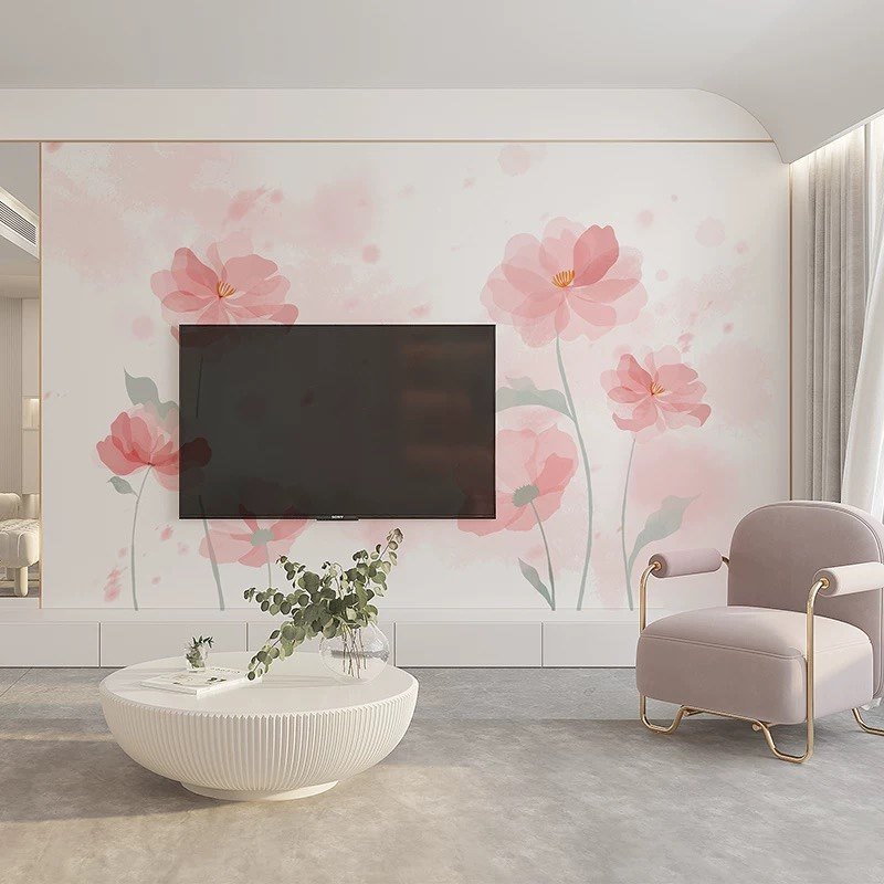 粉色花朵电视背景墙壁纸现代卧室花卉墙纸沙发温馨壁布无缝墙布