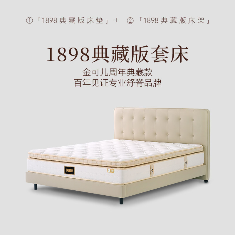 【套购】金可儿1898系列弹簧乳胶床垫护脊酒店单双人真皮床+床垫