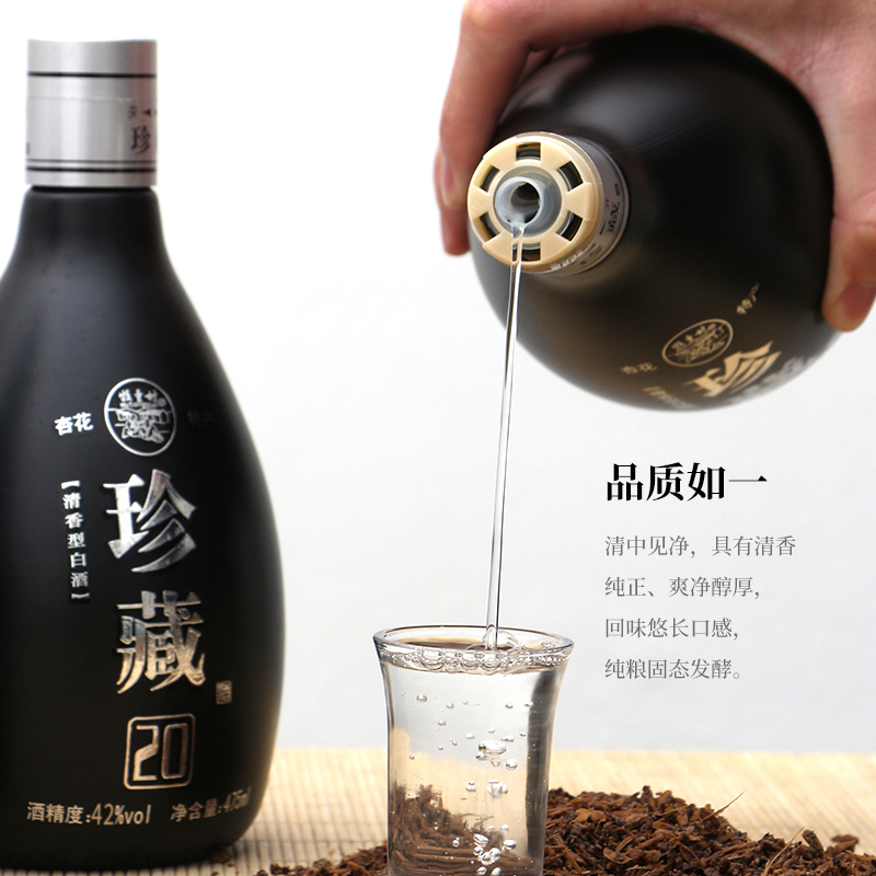 山西纯粮食酒清香型高度白酒 珍藏原浆42度475mlx3瓶整箱礼盒装