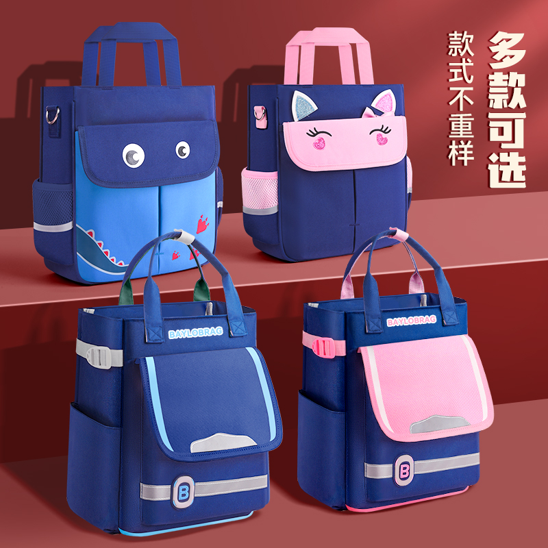 清仓!学生手提袋拎书袋小学生用补课袋补习包男孩拎书包学习作业美术袋试卷袋女孩儿童防水大容量文件袋帆布