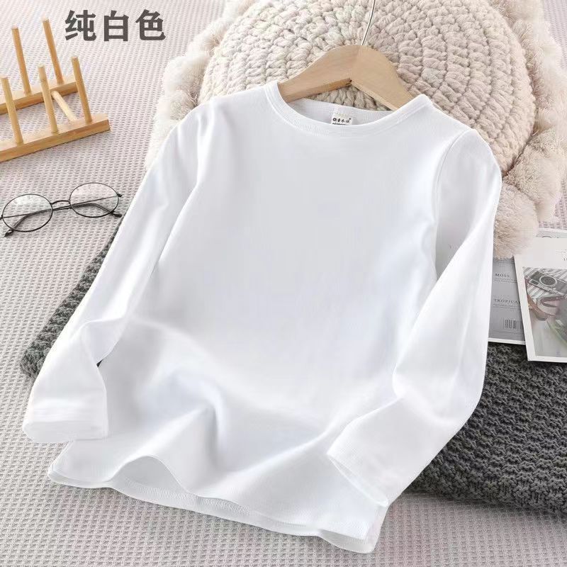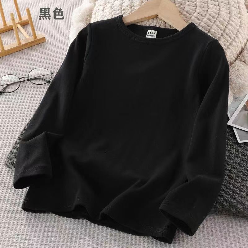 100%纯棉儿童打底衫新款男童女童纯色上衣百搭圆领长袖T恤春秋装