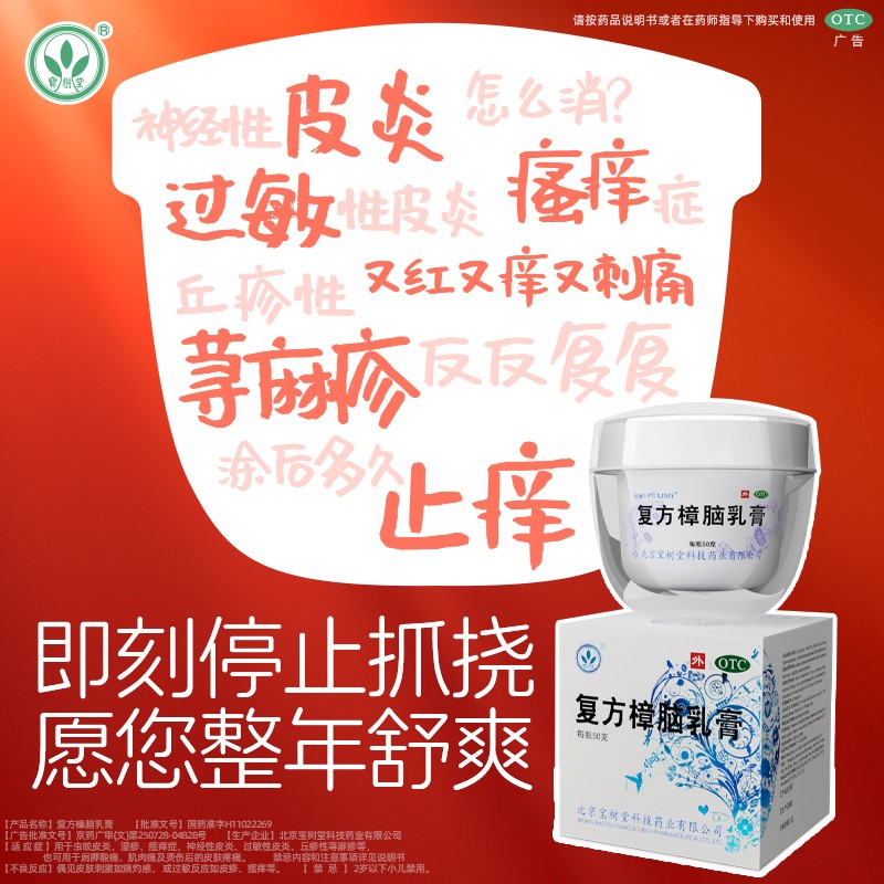 【宝树堂】复方樟脑乳膏50g*1瓶/盒湿疹荨麻疹外用瘙痒止痒烫伤膏药过敏神经性皮炎
