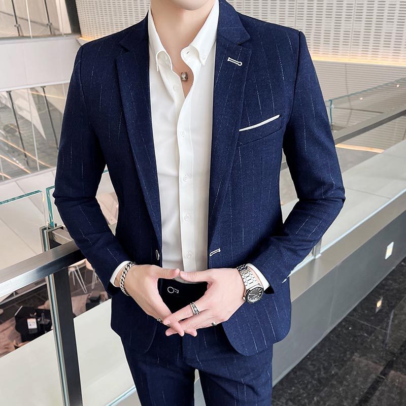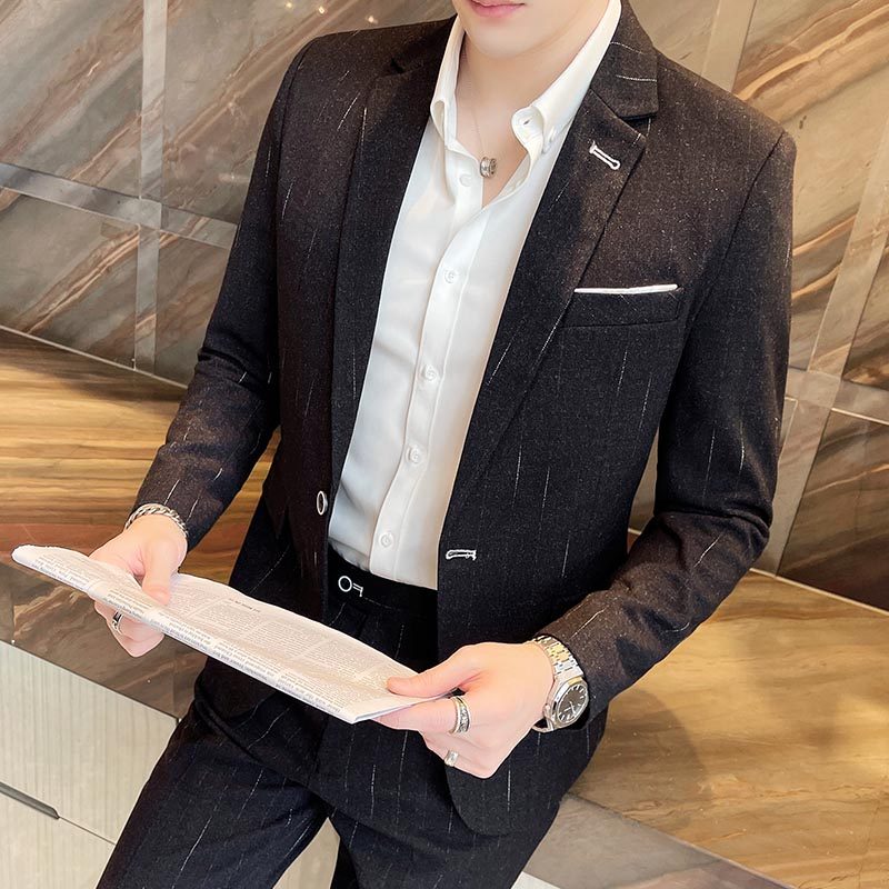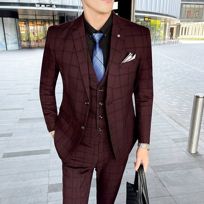 西服男套装韩版修身新郎伴郎结婚潮流职业暗纹西装三件套正装礼服