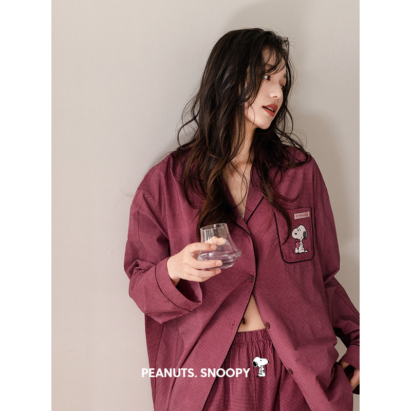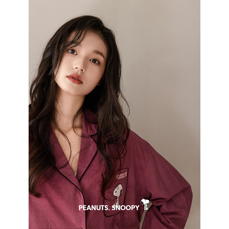 贝妍柔软棉睡衣女春秋时尚翻领长袖套装可爱史努比少女大码家居服