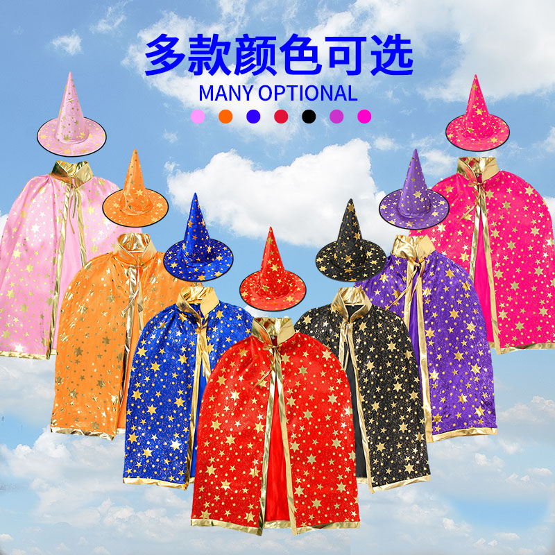 万圣节儿童披风斗篷女童cosplay服饰巫婆魔法师男童表演出衣服装