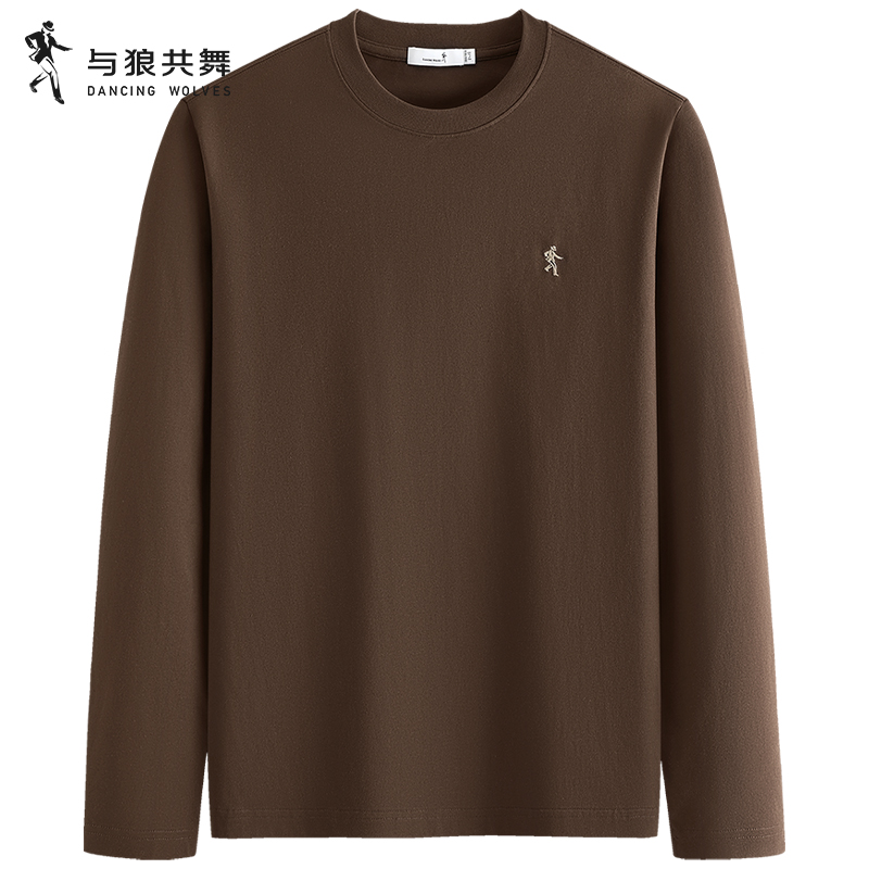 【纯棉】与狼共舞圆领长袖T恤男士2025秋季新款刺绣纯色套头上衣