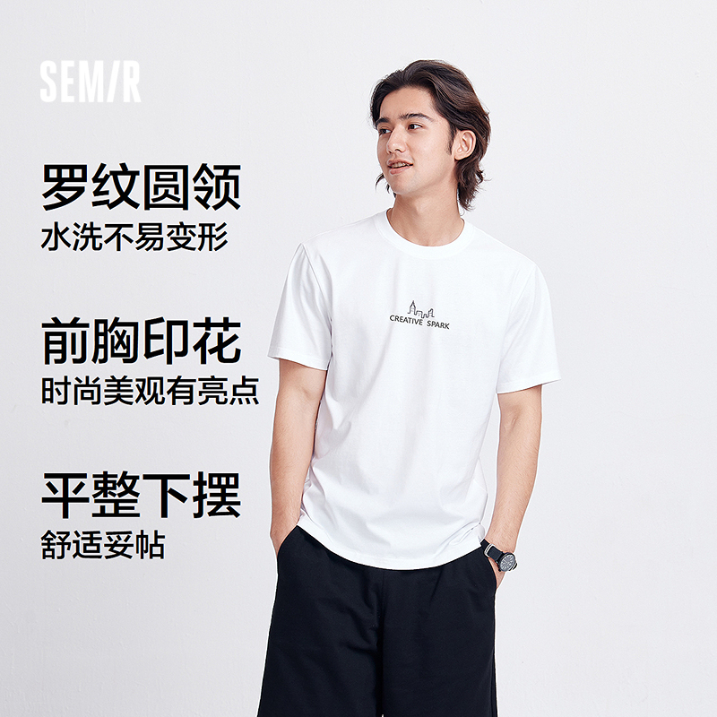 森柔棉|森马短袖T恤男都市通勤休闲纯棉上衣夏季时尚印花针织衣服