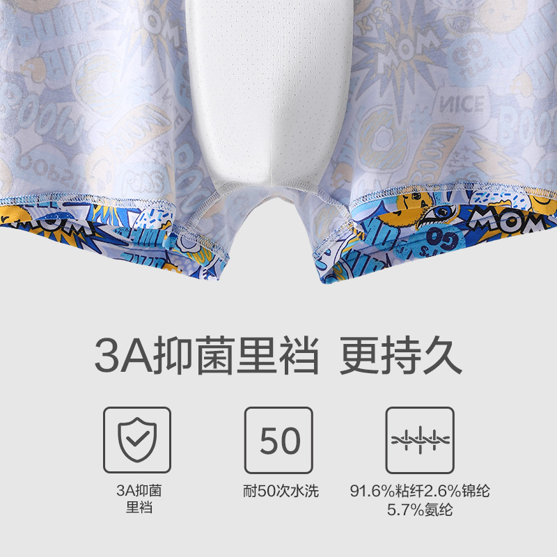猫人100S莫代尔男士内裤四角裤男款青少年平角裤印花裤衩男生裤头