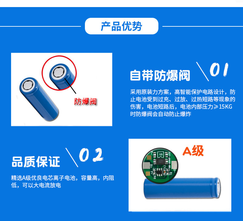全新18650电池平头尖头锂电池充电宝移动电源风扇音箱手电筒数码