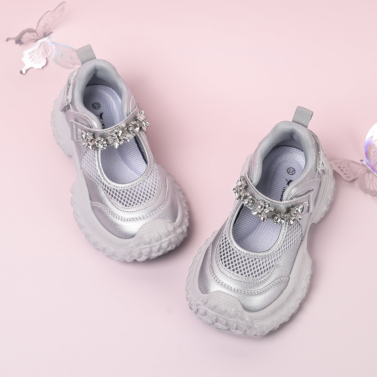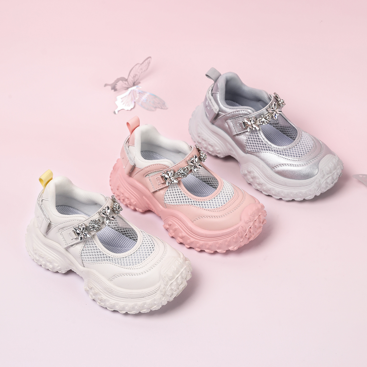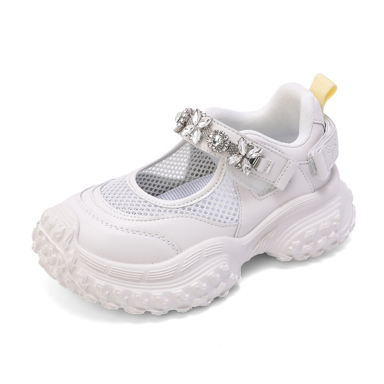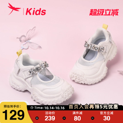 红蜻蜓女童鞋子2025夏季新款带钻甜美软底透气网面儿童运动凉鞋