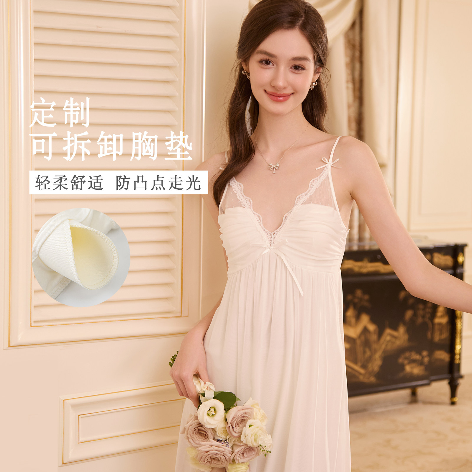 RoseTree性感吊带睡裙女款夏季蕾丝纯欲风睡衣带胸垫夏天2025新款
