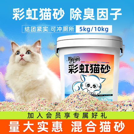 桶装彩虹豆腐猫砂除臭低粉尘结团猫咪小颗粒混合猫沙幼猫可冲厕所