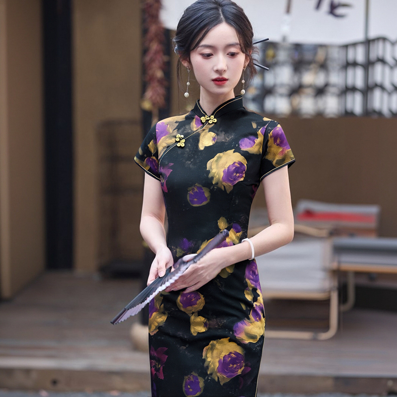中国风中长款改良旗袍2025新款年轻款少女复古修身日常可穿夏季
