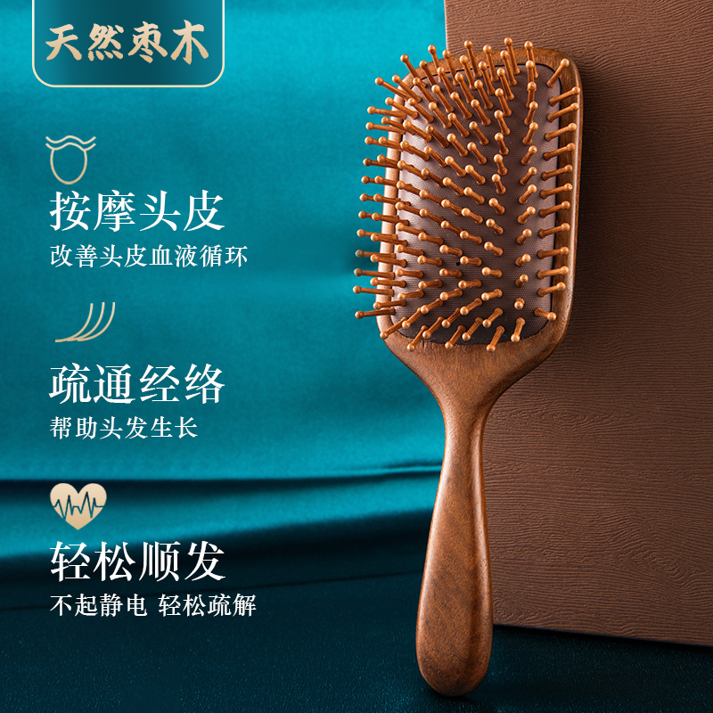 枣木梳子气垫梳女家用木梳气囊经络梳专用头皮按摩梳子女旗舰店