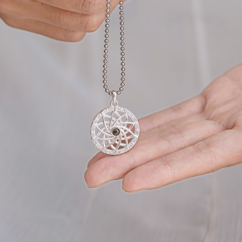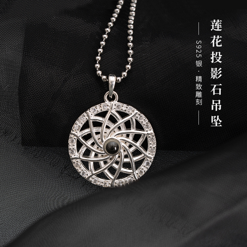 速发楞严咒银吊坠男莲花投影石项链挂件士挂坠情侣饰品