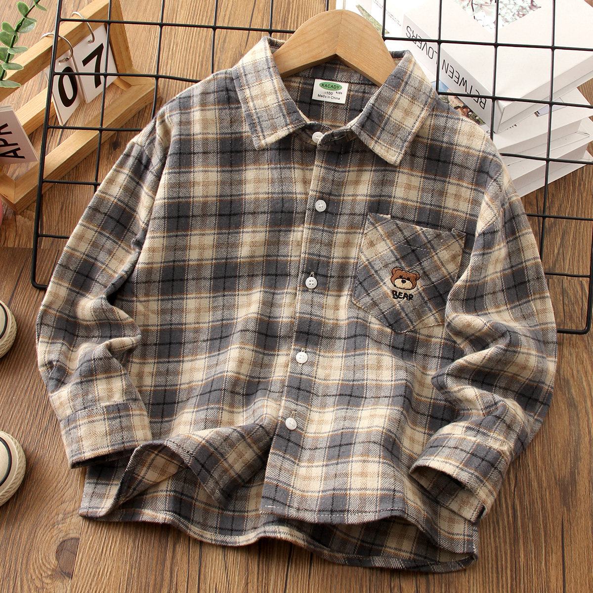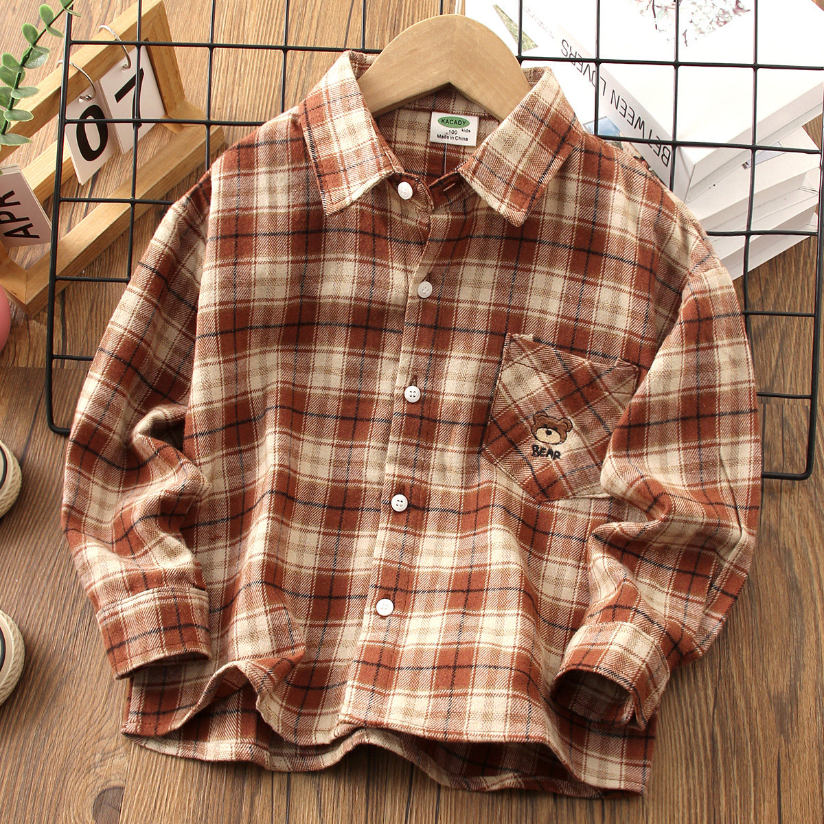 男童纯棉韩版格子长袖衬衫