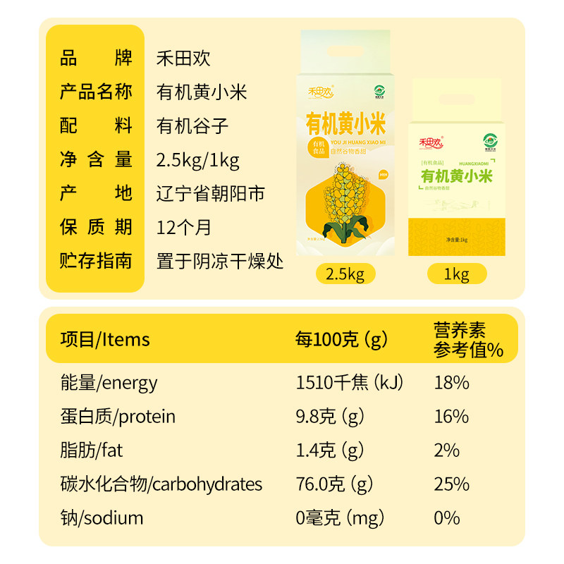 禾田欢有机黄小米正宗小米5斤装真空新米粘小米粥五谷杂粮粗粮米