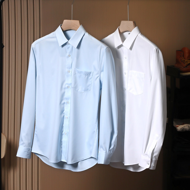 柜799 免熨烫 天丝混纺 丝滑垂顺春季基础商务纯色长袖衬衫衬衣男