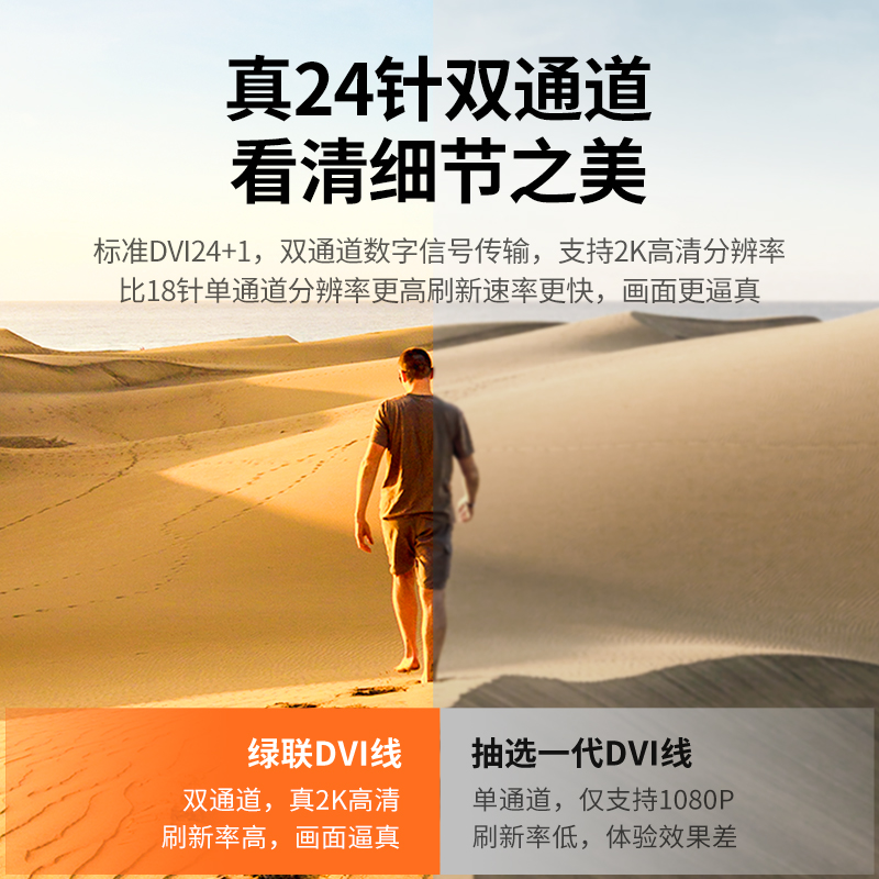 绿联 dvi线电脑显示器屏连接线高清台式与主机显卡接口转视频数据