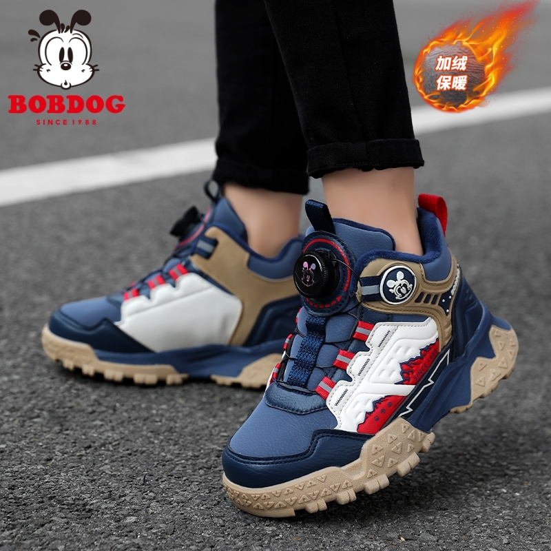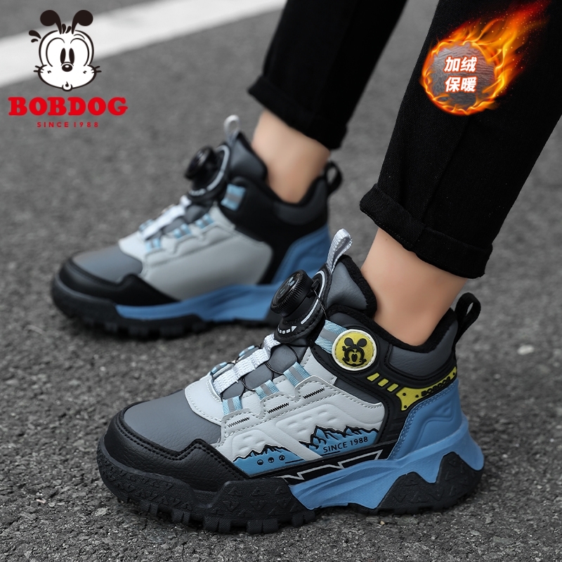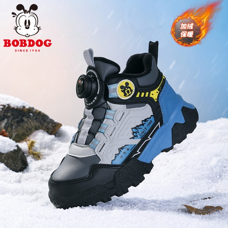 巴布豆男童棉鞋冬季加绒二棉鞋子儿童防滑运动鞋中大童大棉雪地靴