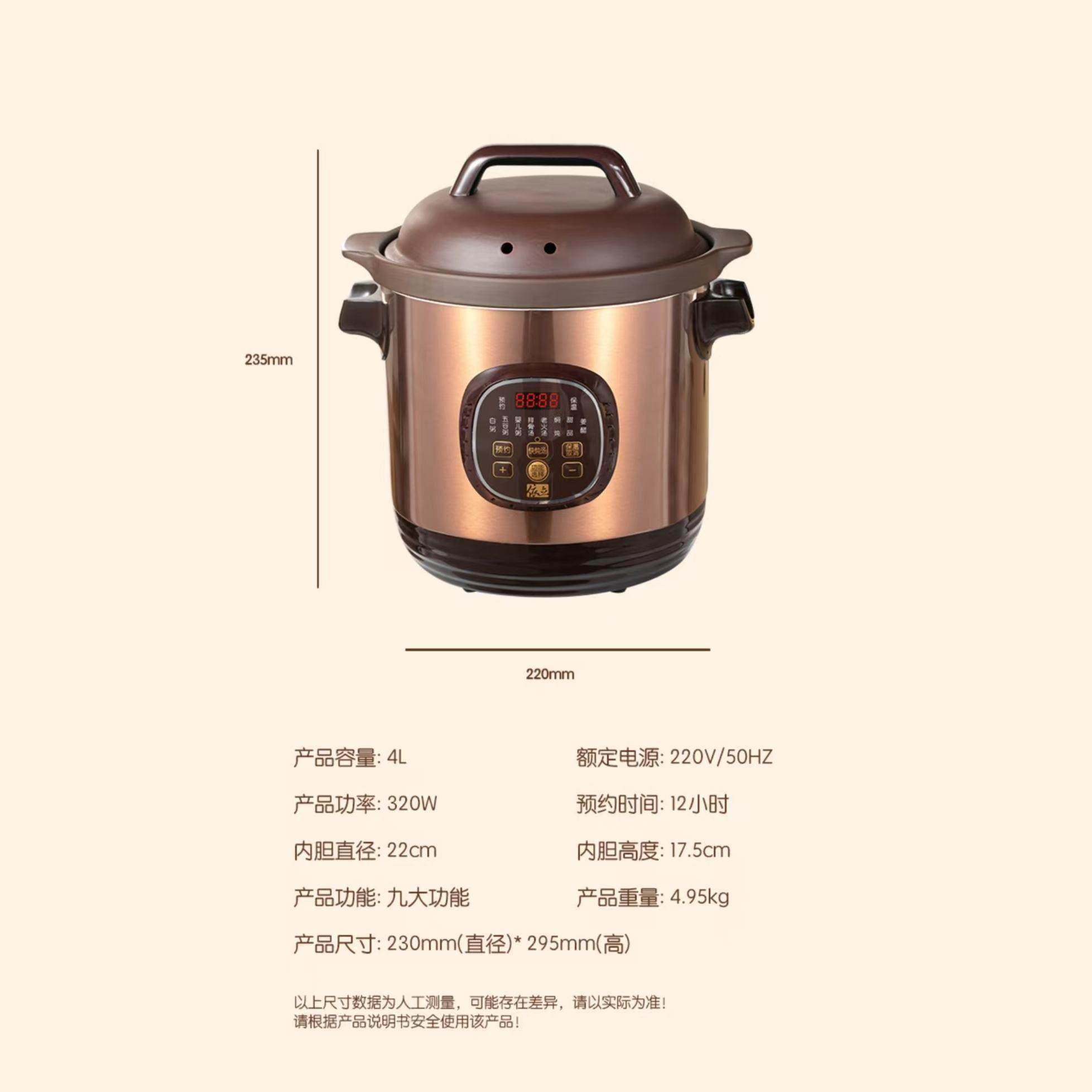 依立 TBY5-1依立4升紫砂锅K400全自动预约电炖锅煮粥煲汤锅电砂锅
