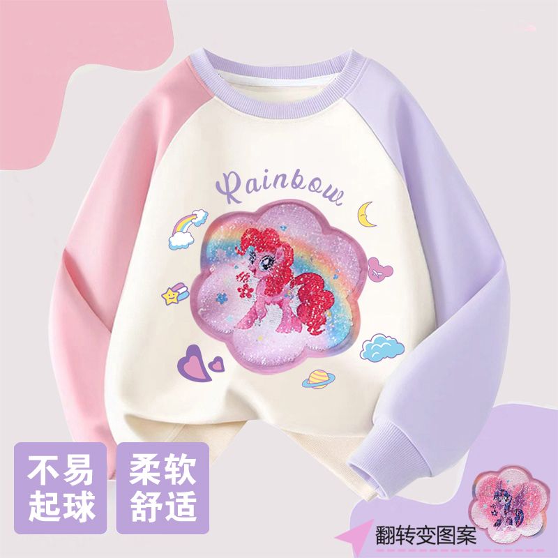 NASA童装亮片卫衣小马宝莉叠穿翻面变色衣服女童爆款撞色变脸卫衣