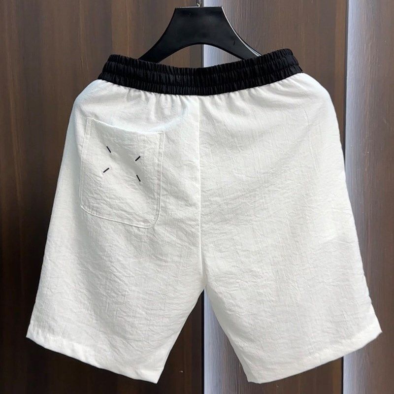 夏季新款休闲亚麻短裤男士纯色百搭时尚五分裤潮流透气直筒沙滩裤