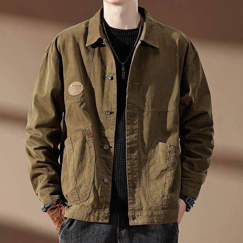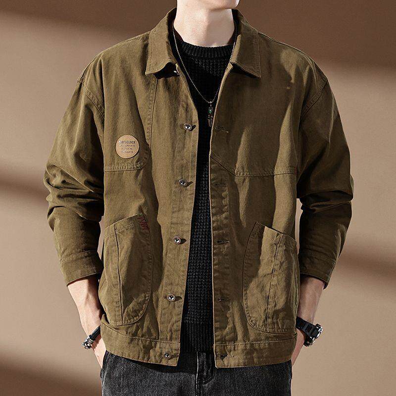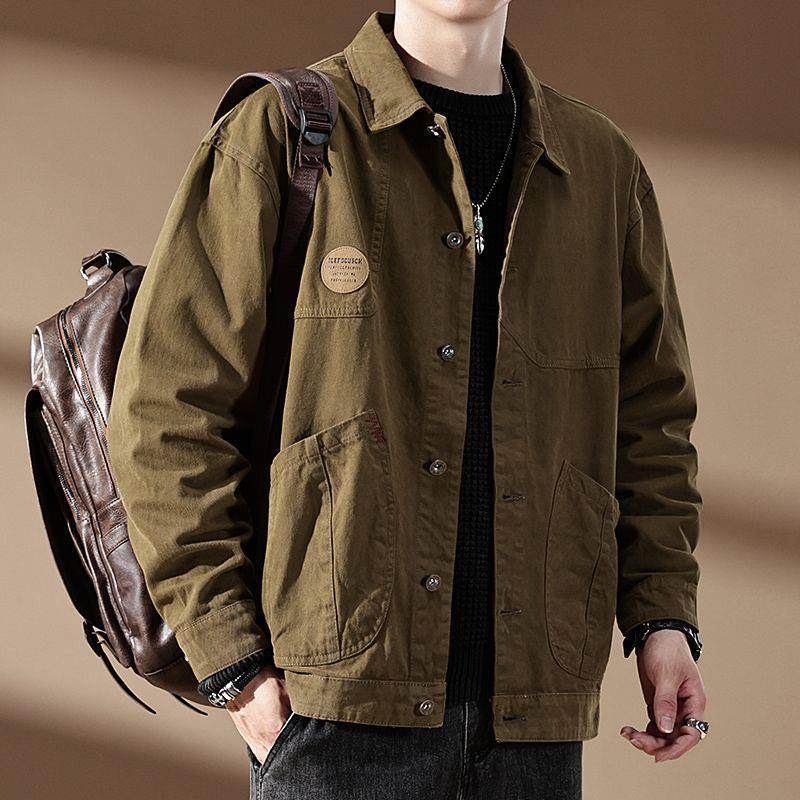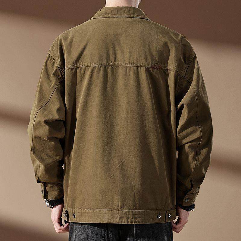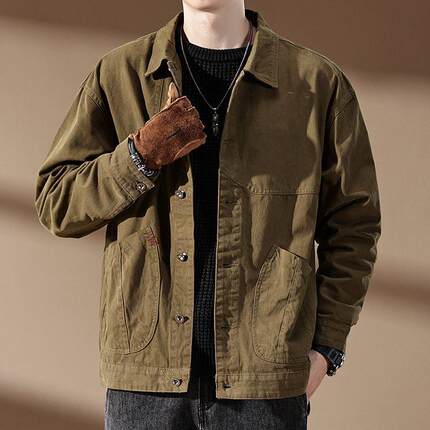 美式猎装夹克男士秋季潮牌复古工装上衣青年宽松纯色痞帅休闲外套