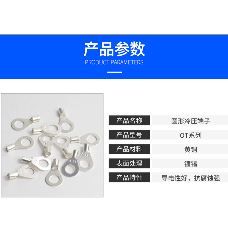 冷压接线端子OT0.5/1/1.5/2.5连接器O型圆形电线开口铜鼻子线耳