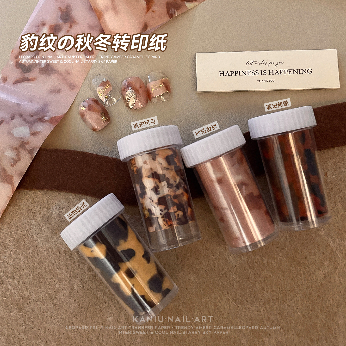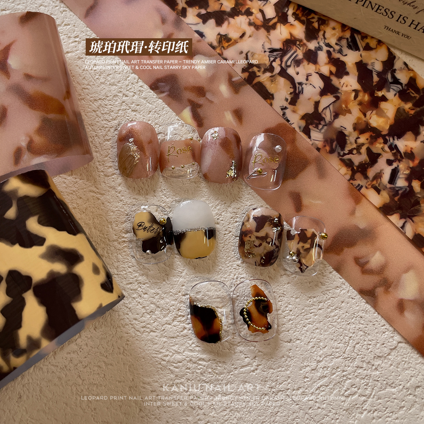 秋冬豹纹转印纸网红美拉德玳瑁辣妹焦糖琥珀不规则复古指甲装饰品