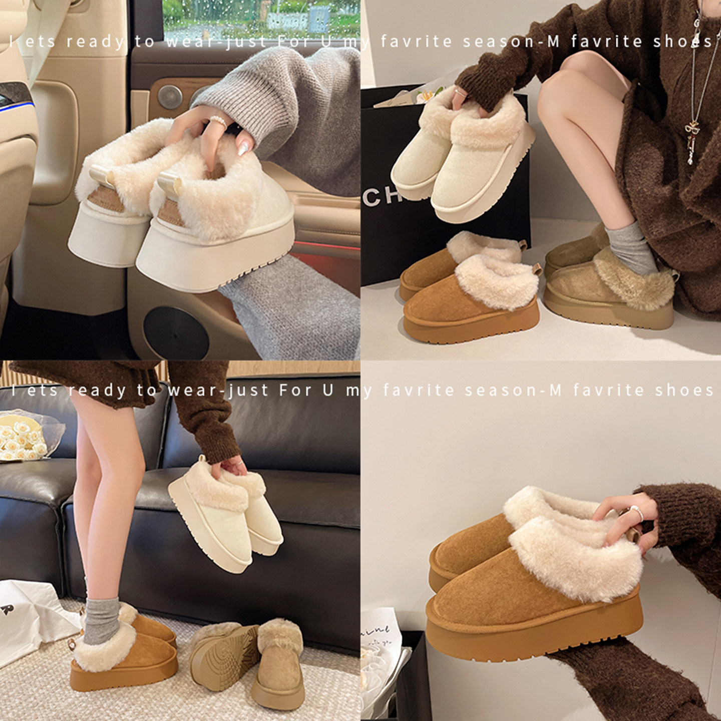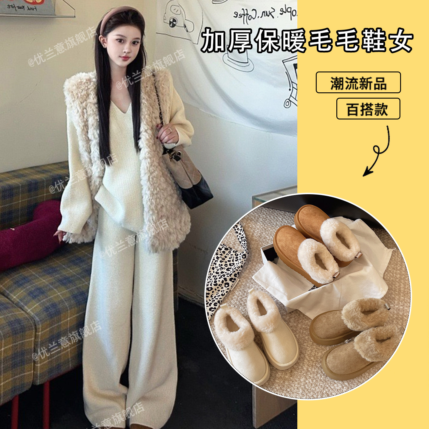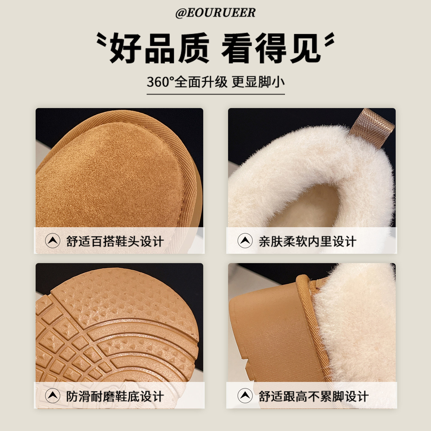 白色厚底毛毛雪地靴女2025新款秋冬季保暖加厚短靴及踝低帮棉鞋子