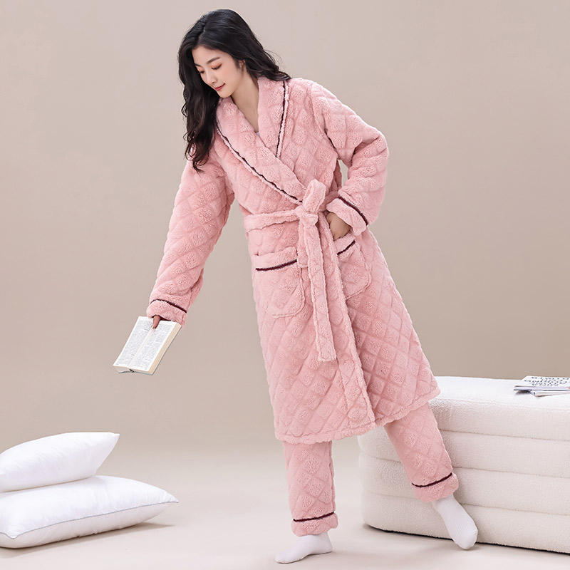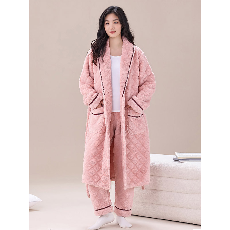 珊瑚绒睡衣冬季女款加绒加厚浴袍长款秋冬季新款法兰绒家居服套装