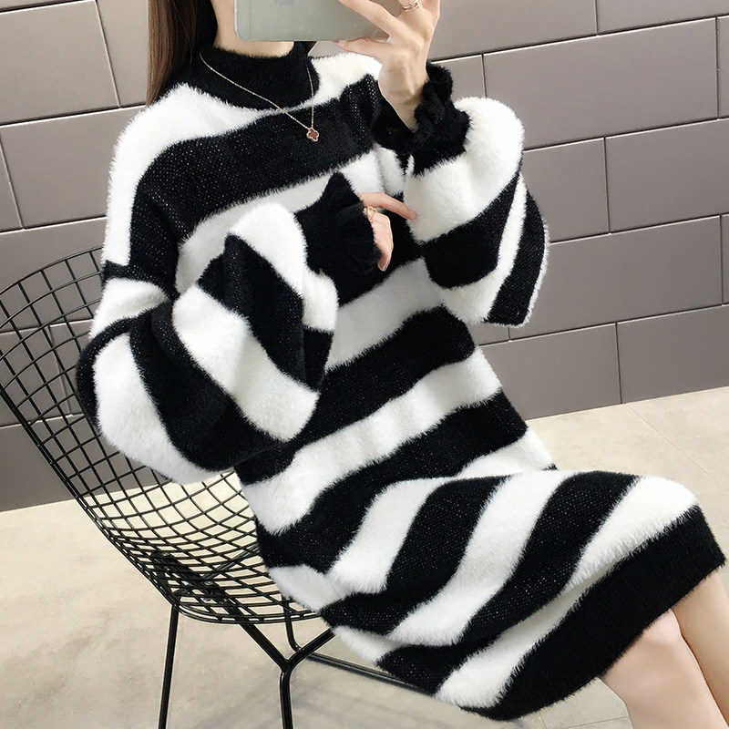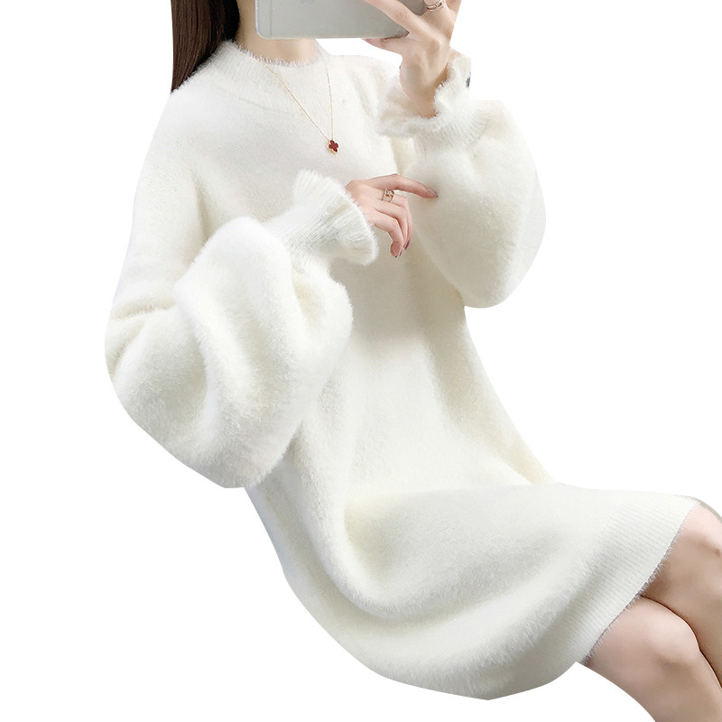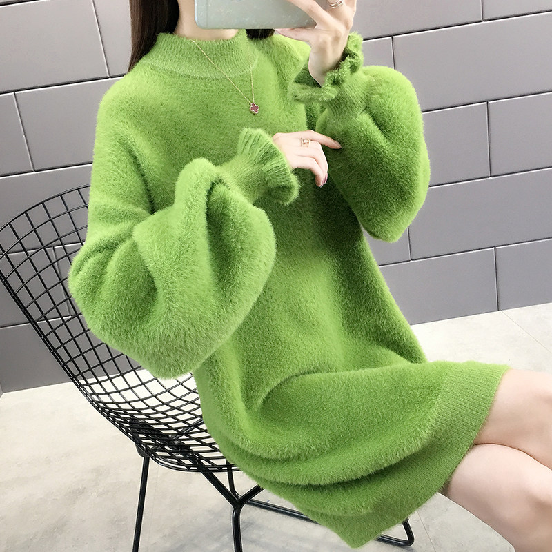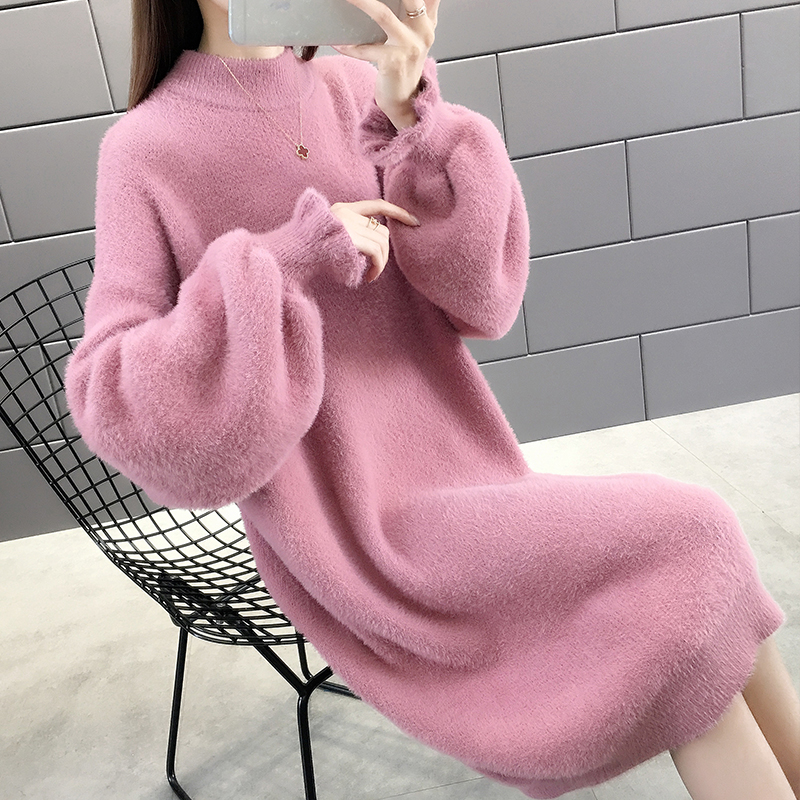 秋冬水貂绒中长款毛衣女配大衣连衣裙2025新款时尚宽松加厚打底衫