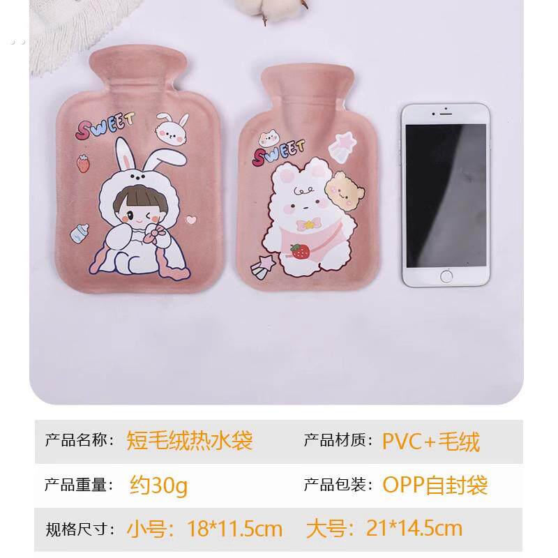 新款毛绒布热水袋注水小号冲水灌水暖水袋便携暖肚子迷你热水袋