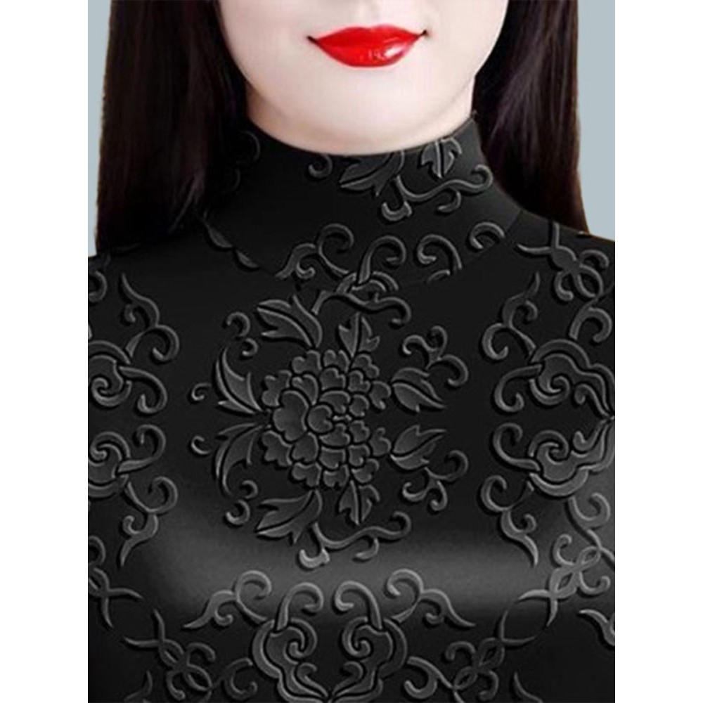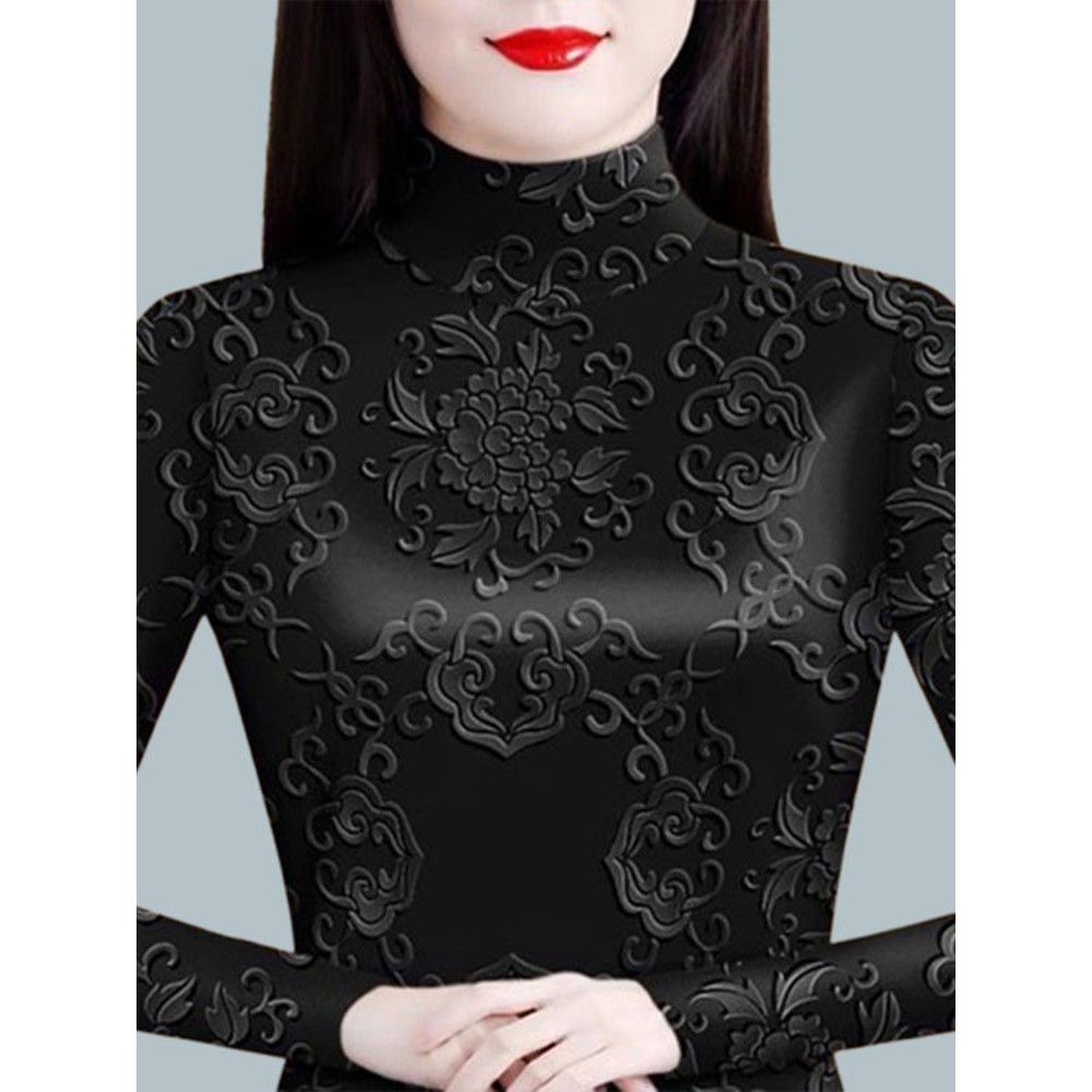 双面德绒半高领蕾丝打底衫女长袖2025年秋冬新款时尚内搭保暖上衣