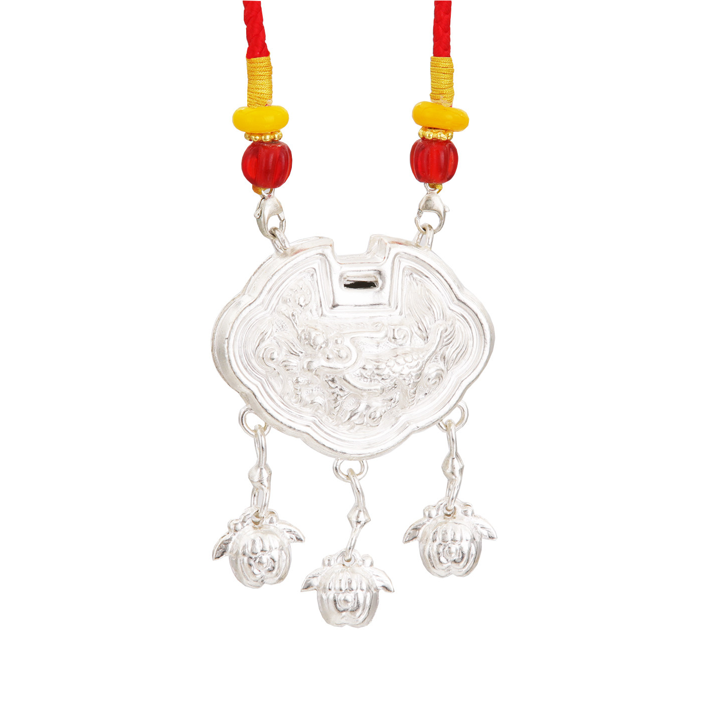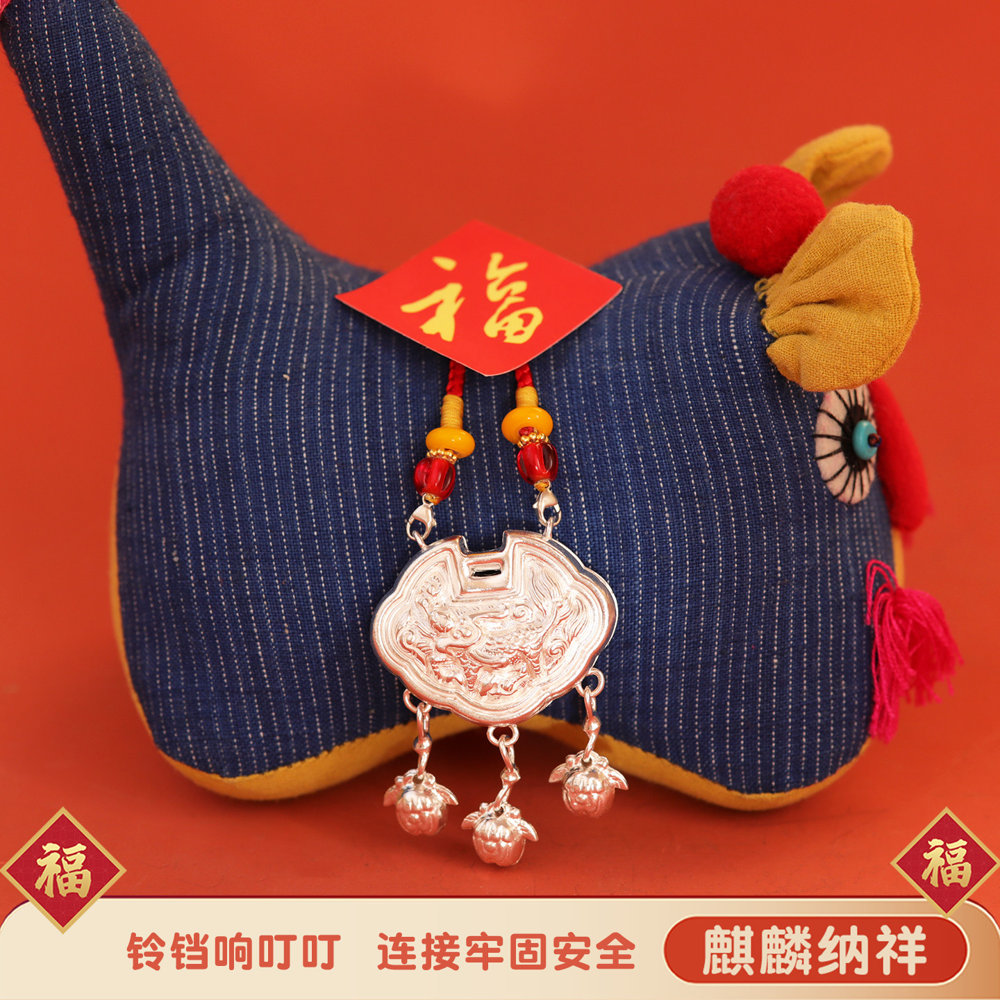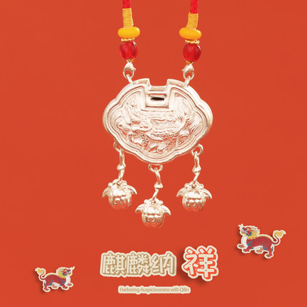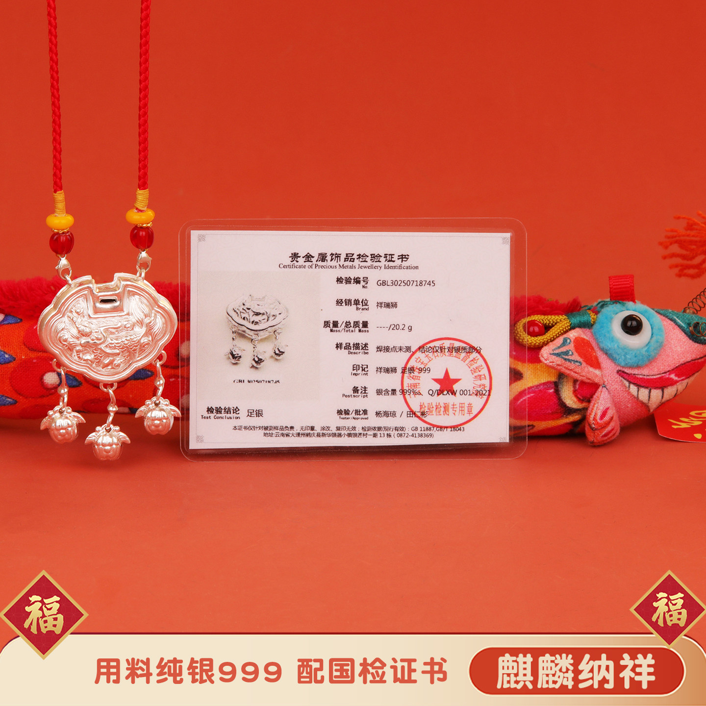 《麒麟纳祥》宝宝长命银锁999纯银吊坠儿童满月周岁礼物婴儿银饰