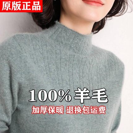 鄂尔多斯市正品羊绒衫女百搭加厚保暖打底秋冬宽松羊毛半高领毛衣