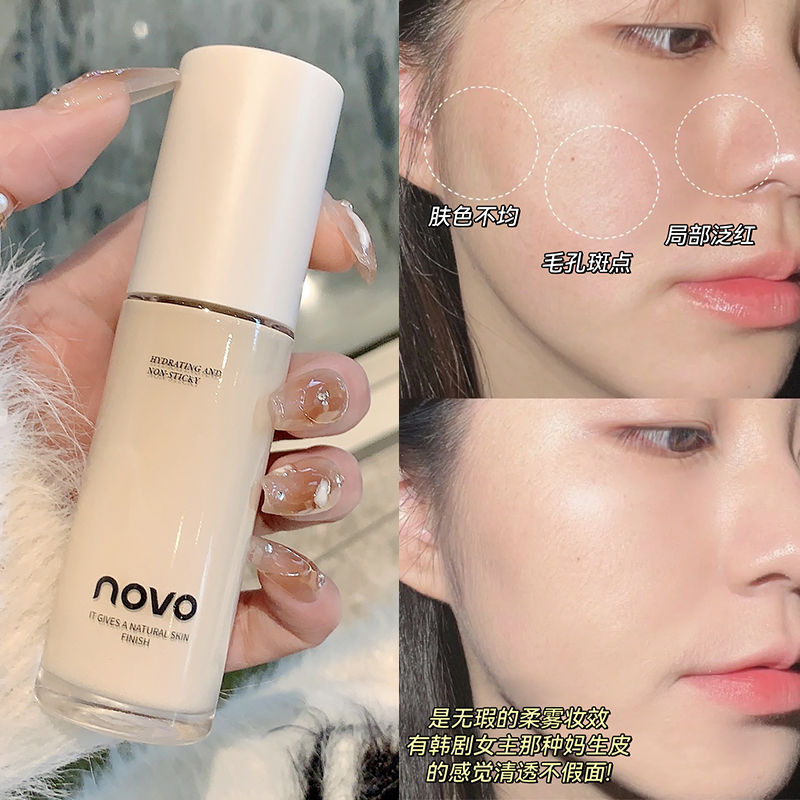 NOVO粉底液防水防汗不脱妆粉底液遮瑕持久控油保湿BB霜学生党正品