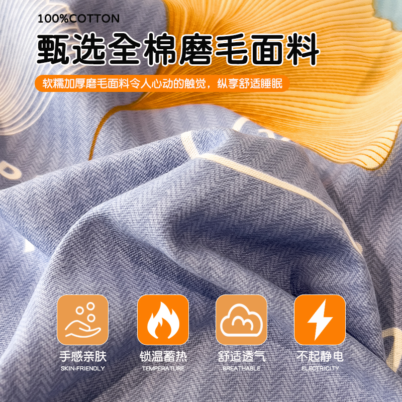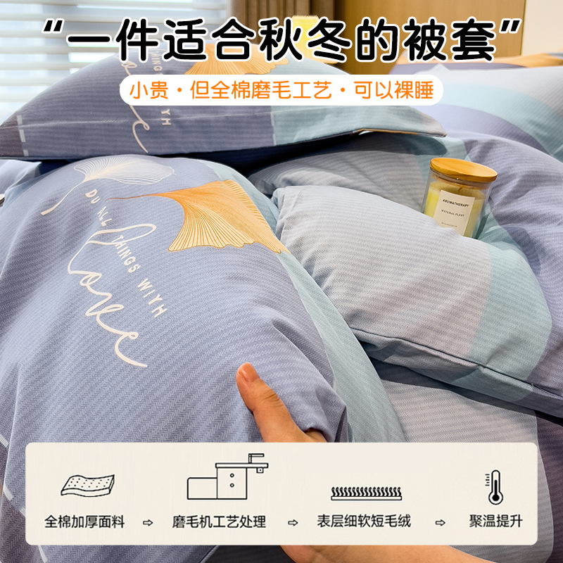 纯棉磨毛被套单件秋冬加厚被芯罩150x200x230学生被单人被罩3件套