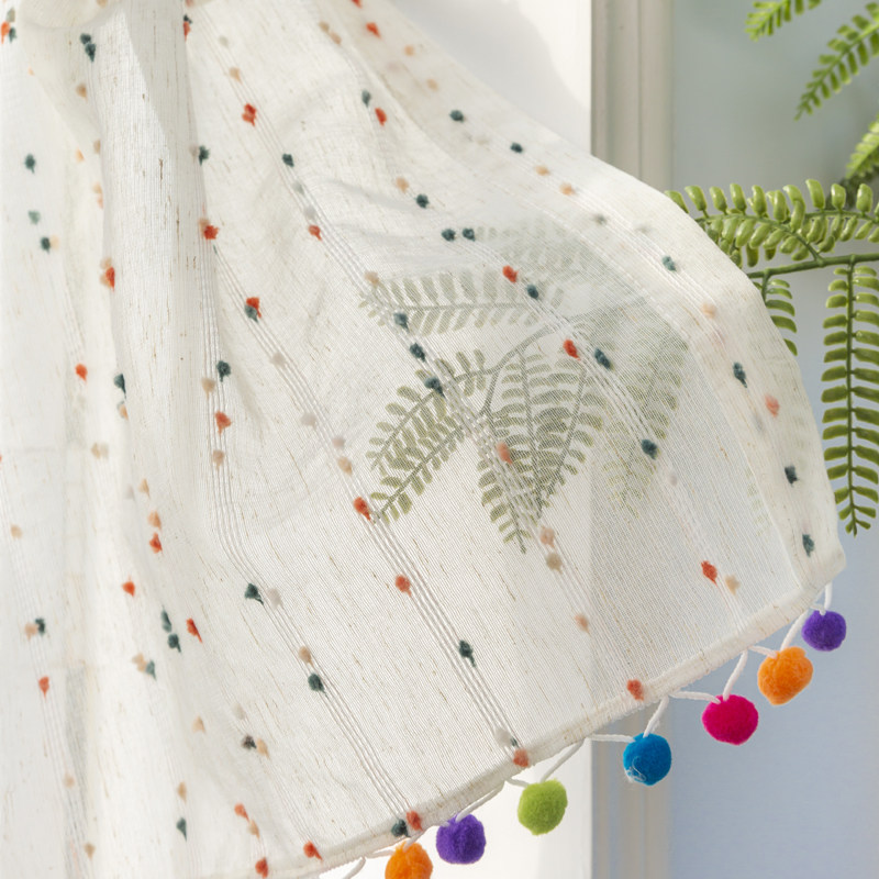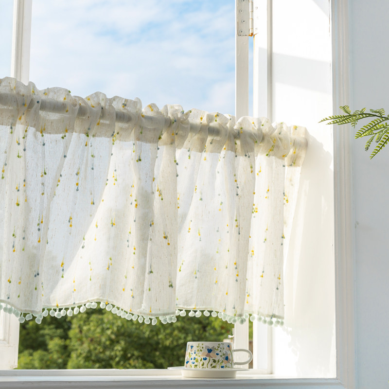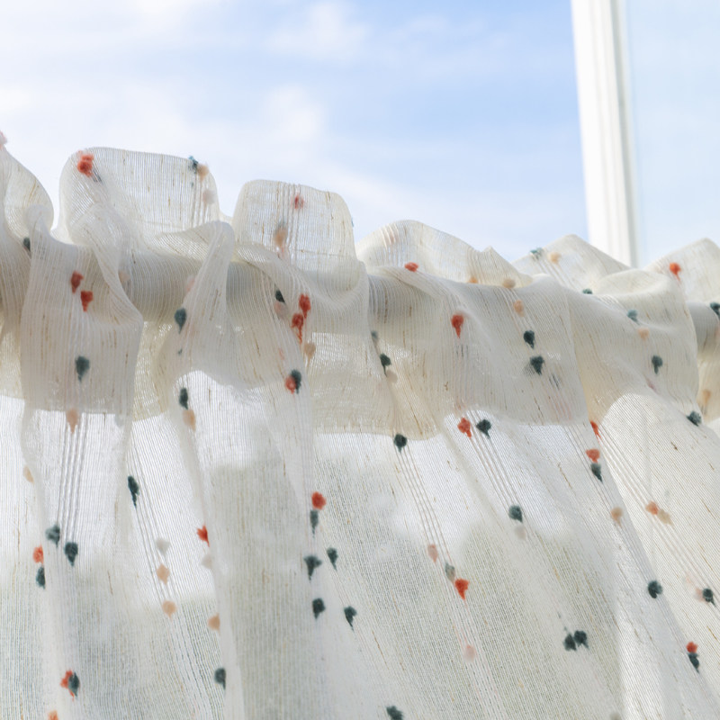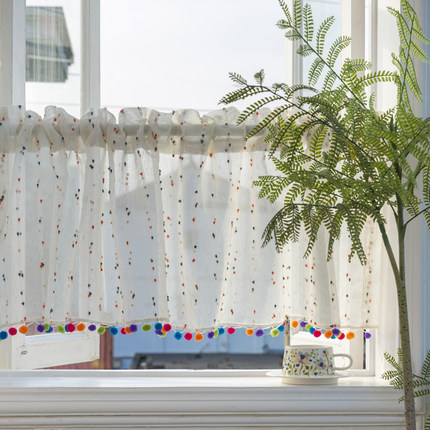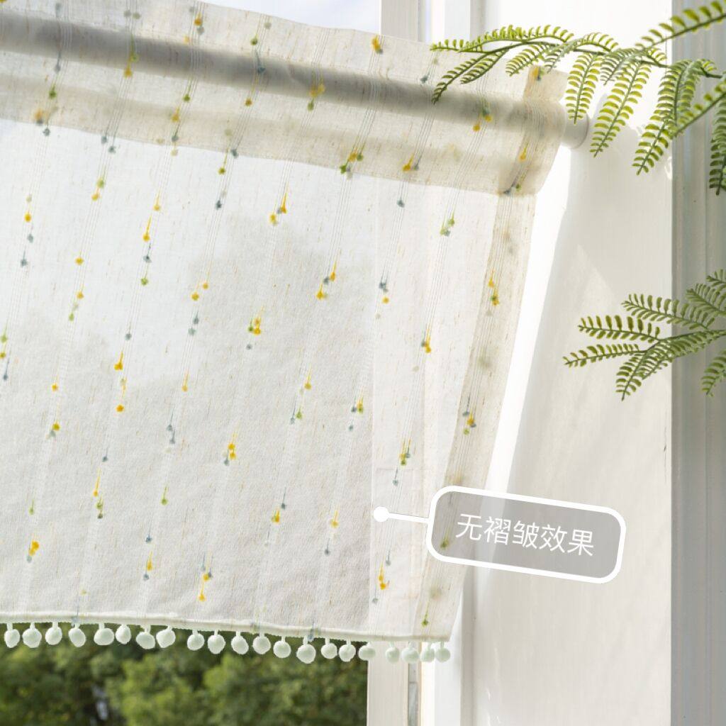 亚麻条纹豆豆纱帘半截短窗帘半帘小窗户免打孔厨房短帘门帘隔断帘