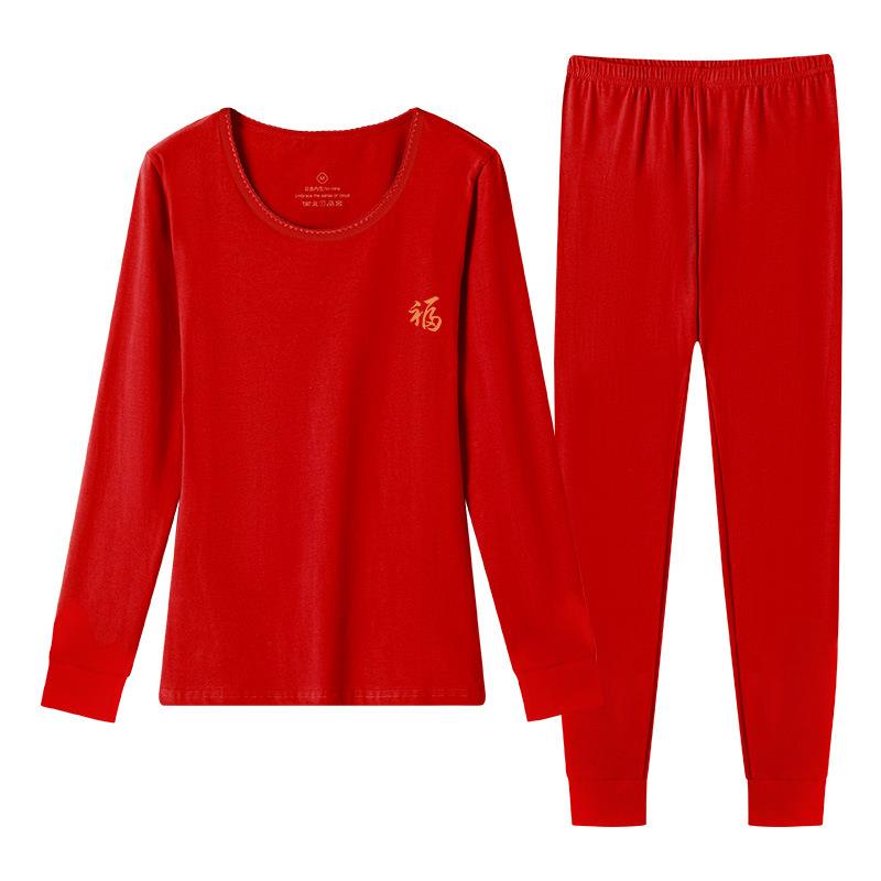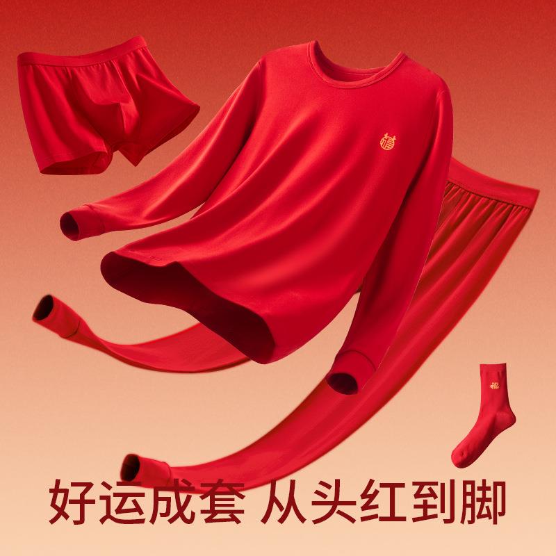 新款蛇年秋衣秋裤男本命年红色纯棉薄款保暖内衣女中老年棉毛衫