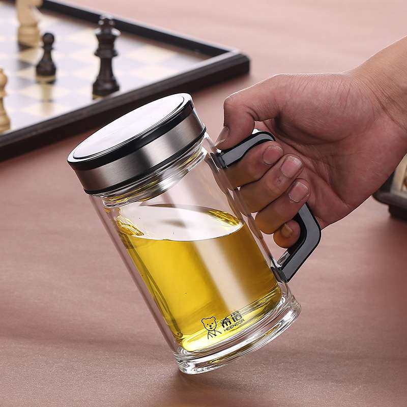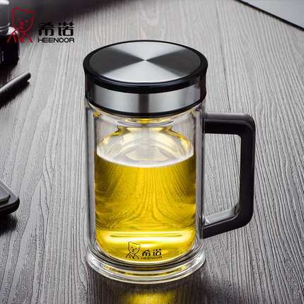 希诺XN-7006双层玻璃杯 有手柄 带盖带滤网 男女士办公杯泡茶杯