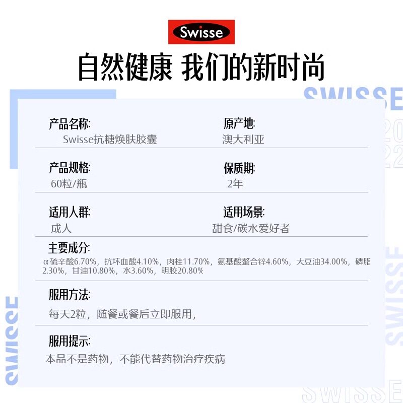 【旗舰店】Swisse双抗抗糖丸控糖胶原蛋白葡萄籽口服效期26.10
