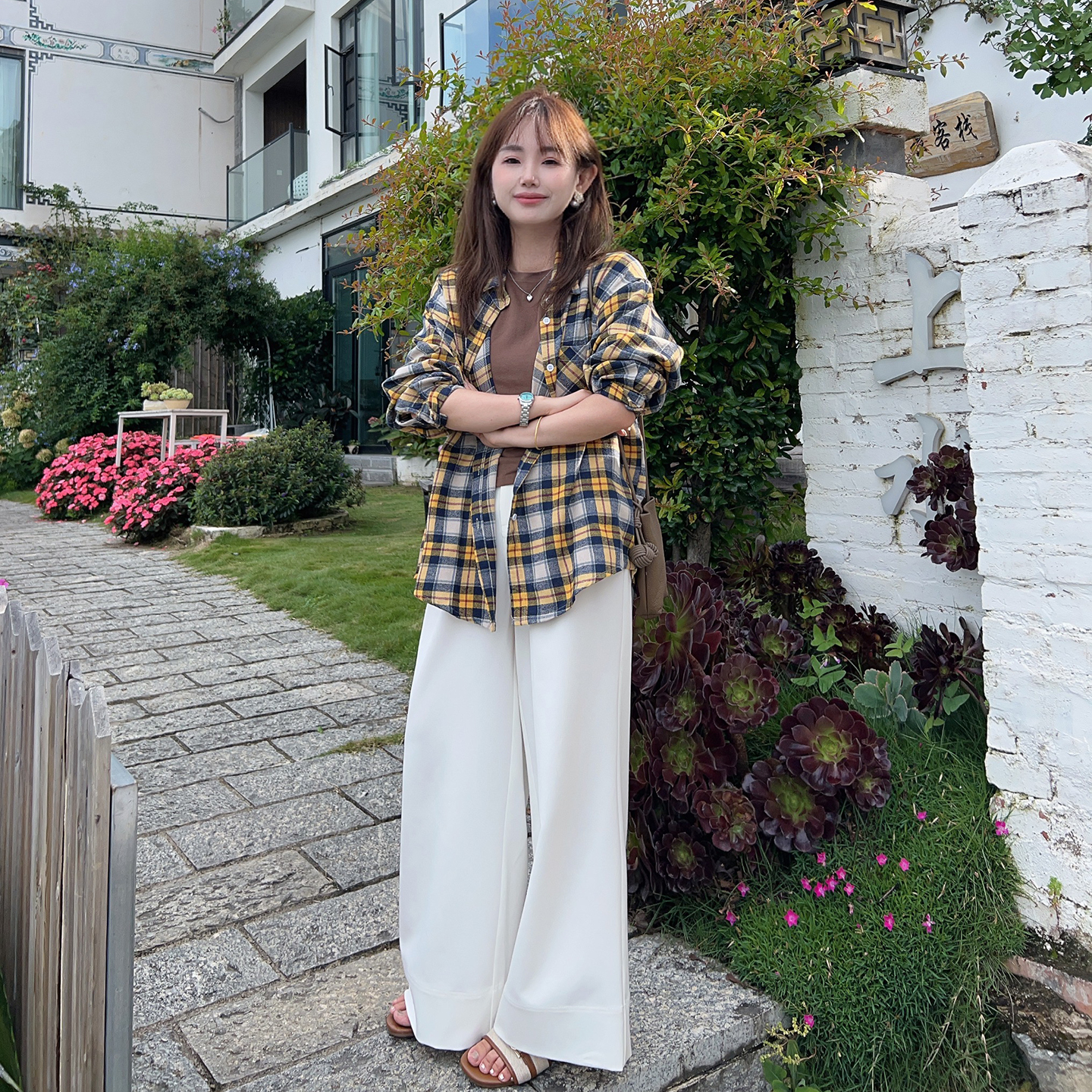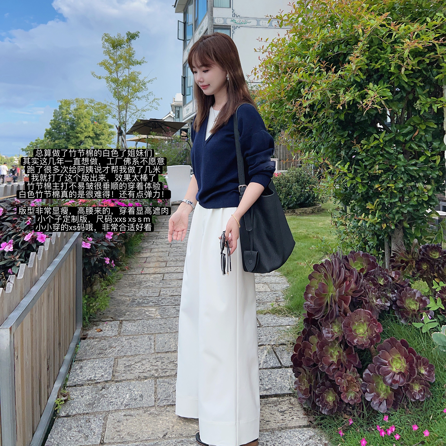 小小家 小个子小码白色竹节棉阔腿牛仔裤大摆宽松休闲直通裤子150