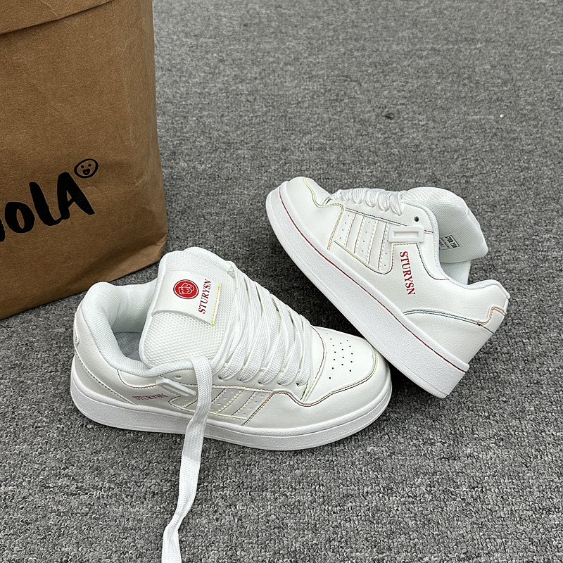 爆款百搭小众白彩虹厚底面包鞋女ins潮2025新款校园风情侣休闲鞋