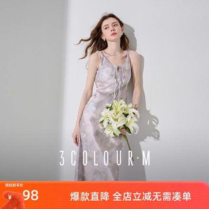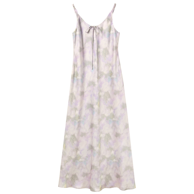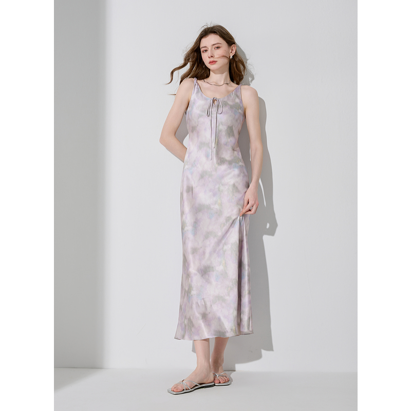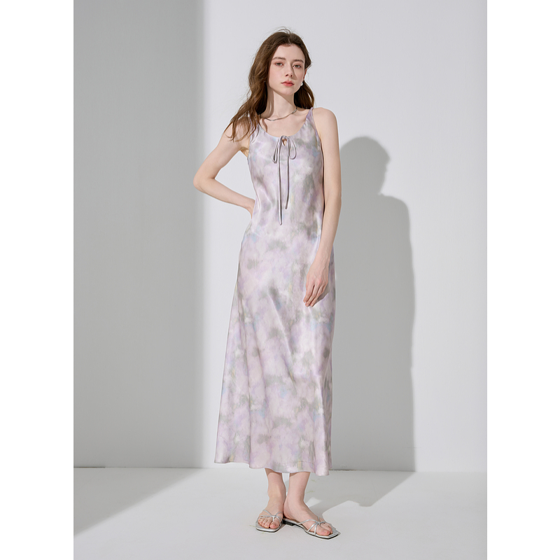 三彩2025夏季新款无袖吊带裙A字裙晕染印花连衣裙长裙垂感M