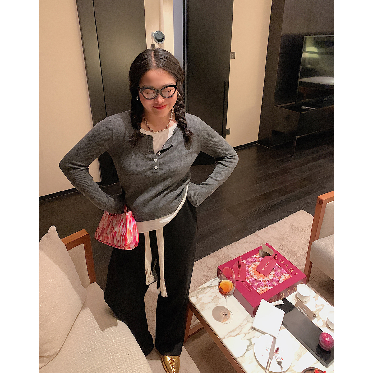 Dazi金大支假两件套针织衫女春秋季韩系温柔风修身显瘦打底衫上衣