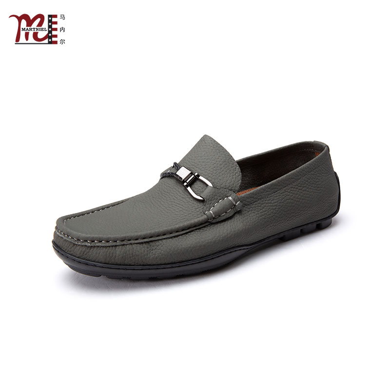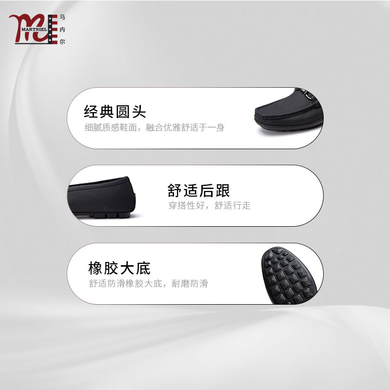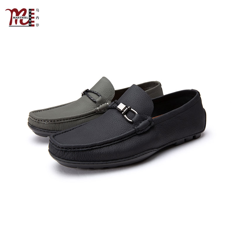 马内尔鞋子男夏季新款黑色休闲软底马衔扣一脚蹬懒人豆豆鞋M24021