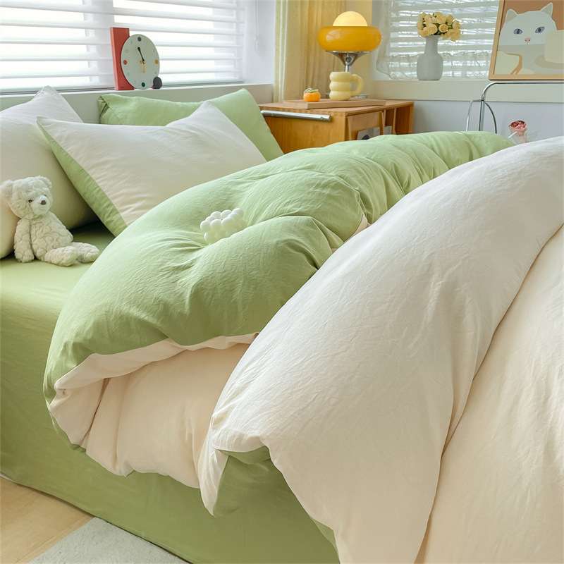 纯色水洗棉四件套学生宿舍三件套单双人被套床单床笠床上用品